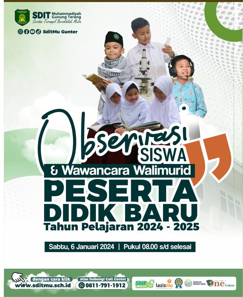 Pengumuman Hasil Observasi PPDB SDIT Mu Gunter TA. 2024/25 – Tanggal 6 & 8 Januari 2024
